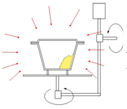 Le moule fermé est placé dans un four, tourné lentement autour de deux axes (biaxiaux) et chauffé à une température d’environ 180 à 300°C. Le plastique se solidifie alors. Le plastique commence alors à fondre lentement sur les parois chaudes du moule et se répartit uniformément sur les parois intérieures du moule.